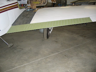 The left wing showing where the old "flying wing" stall indicator was removed.